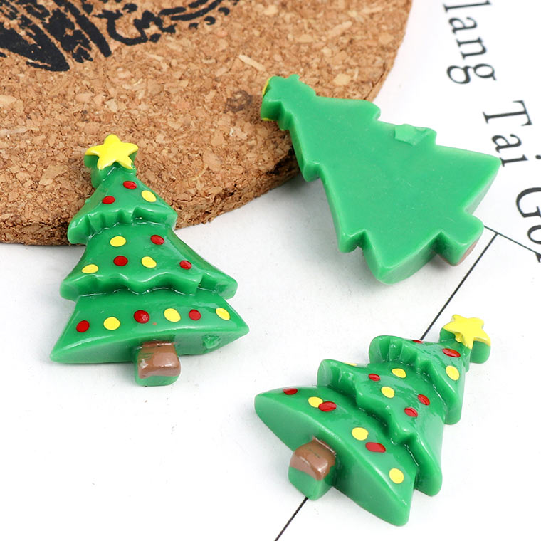 2個入 約 23mm×32mm×8mm プラスチックカボション クリスマスツリー / xmas クリスマス オーナメント 装飾 樹脂パーツ 貼り付けパーツ 埋め込み 素材 デコパーツ セッティングパーツ 装飾パーツ アクセサリーパーツ ハンドメイド材料【ゆうパケット対応】